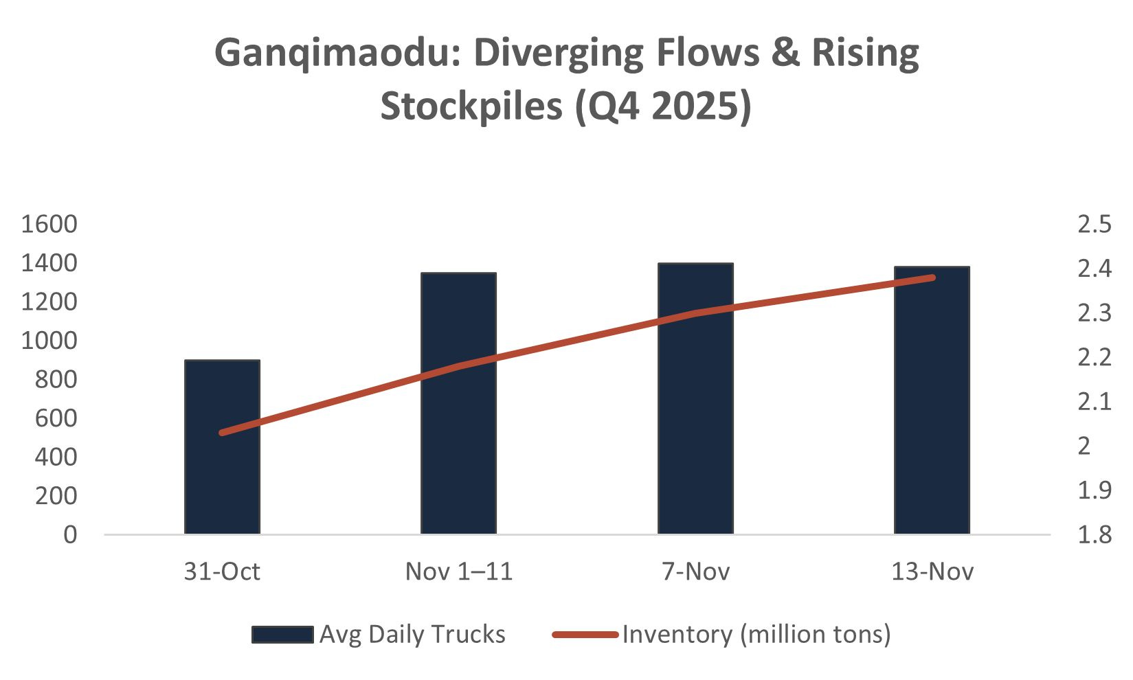 Truck Flow Drops: Coking coal inventory at the border creates a backlog.
